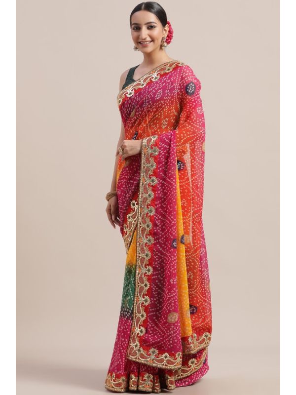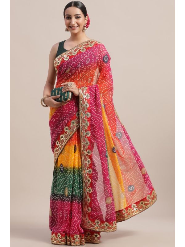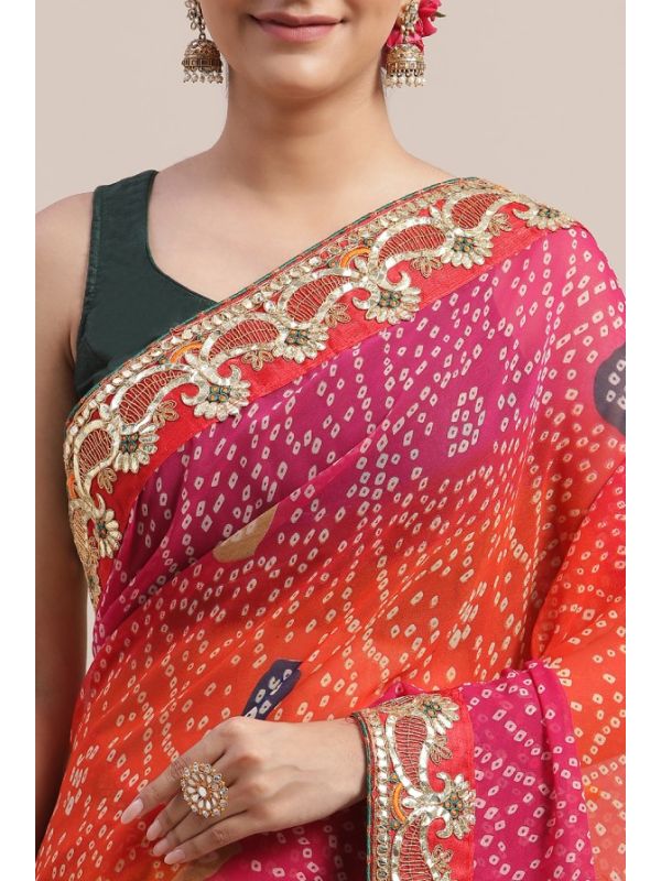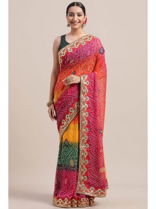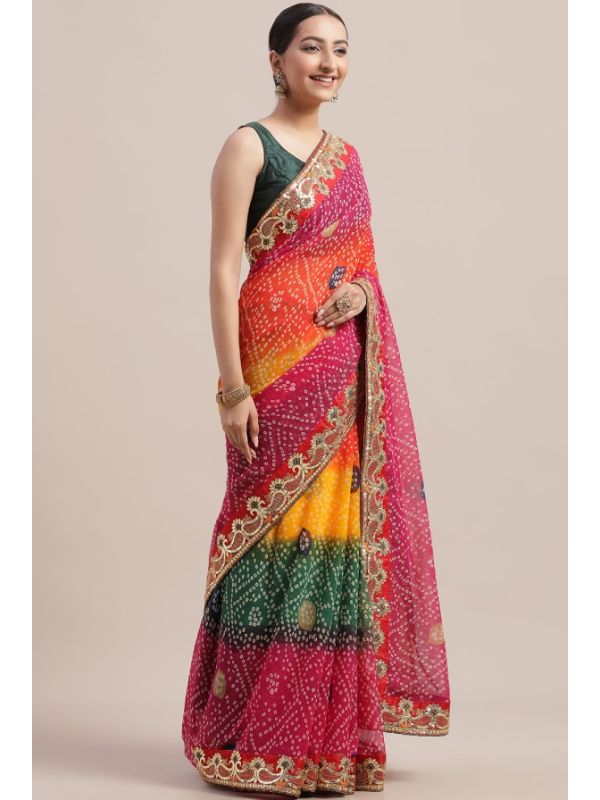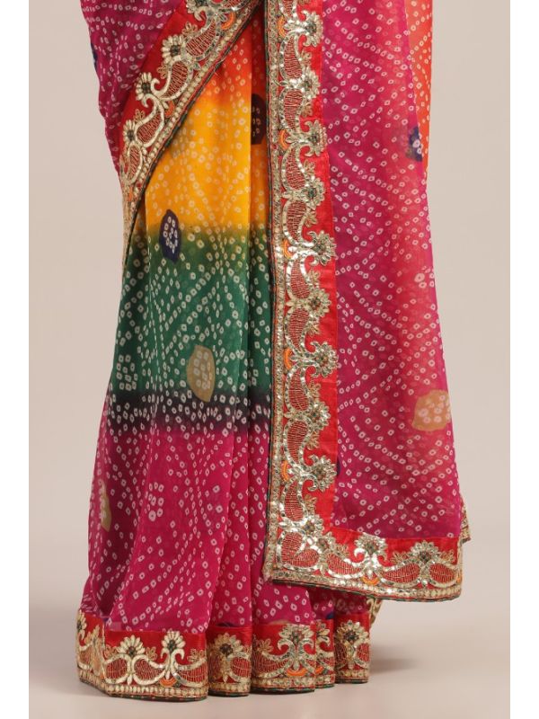 | Work | Digital Print, Lace Border, Embroidery, Bandhani Pattern |