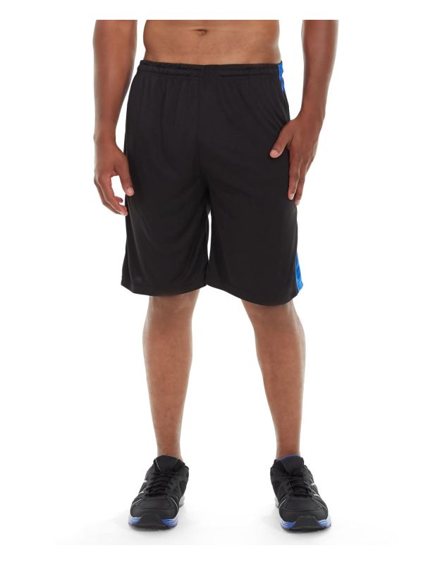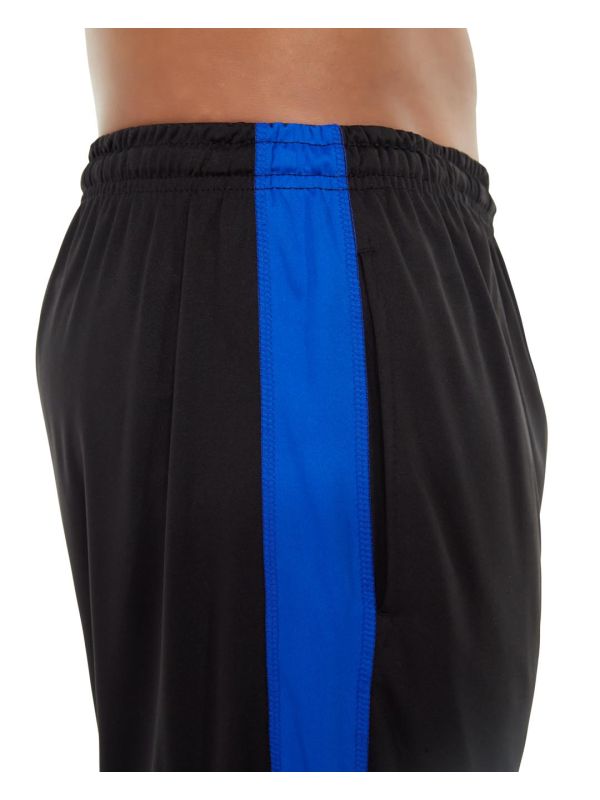 • Black shorts with royal accents.